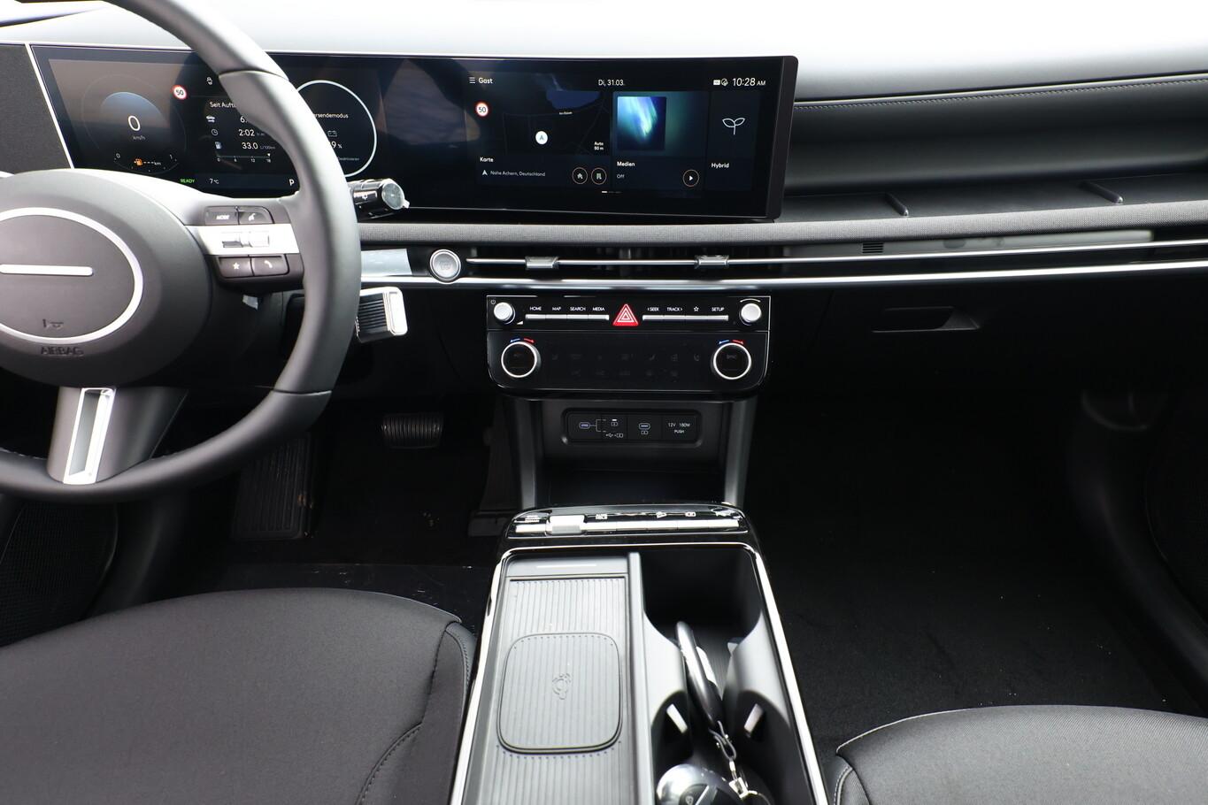 Steckdose (12V-Anschluß) vorn, Fahrassistenz-System: Totwinkel-Assistent, Heckklappe/-Deckel elektr. betätigt, Heckleuchten LED, LM-Felgen 19", Reifen 235/50 R19, Sitzbezug/Polsterung: Stoff/Leder, Smartphone-Schnittstelle (Apple CarPlay & Android Auto), Sprachsteuerung, USB-Anschluss vorn und hinten, Dachspoiler (3. Bremsleuchte), Digital Cockpit (Instrumentenanzeige Digital) (Kombiinstrument digital mit Panorama-Display (Curved) / Bordcomputer), Sound-System KRELL (7 Lautsprecher / Subwoofer), Lenkrad (Leder) (Lenkrad (Leder) 3-Speichen / Lenkrad (Leder) mit Multifunktion), Fahrassistenz-System: Einparkhilfe vorn und hinten (Einparkhilfe hinten), Anhänger-Stabilisierungs-Programm (TSA), Außenspiegel lackiert, Fahrassistenz-System: Insassenalarm (Rear Occopant Alert, ROA), Hybrid 158 kW (Motor 1,6 Ltr. - 118 kW T-GDI), Induktionsladeschale für Smartphone, Innenspiegel mit Abblendautomatik, Karosserie: 5-türig, Lendenwirbelstütze Sitz vorn links, elektr. verstellbar, Lendenwirbelstütze Sitz vorn rechts, elektr. verstellbar, Lenkrad heizbar, Lenksäule (Lenkrad) höhenverstellbar, Lenksäule (Lenkrad) längsverstellbar, Leseleuchten vorn und hinten LED, Otto-Partikelfilter (OPF), Parkbremse elektrisch (EPB), Radstand 2680 mm, Schalt-/Wählhebel (Shift by Wire), Sitz vorn links höhenverstellbar, Sitz vorn rechts höhenverstellbar, Touchscreen-Farbdisplay (12,25 Zoll), Türgriffe außen Wagenfarbe, Audio-Navigationssystem, Freisprecheinrichtung Bluetooth, Anti-Blockier-System (ABS), Antriebsart: Allradantrieb, Elektron. Stabilitätskontrolle (ESC) mit Bremsassistent, Wegfahrsperre (elektronisch), Getriebe Automatik - (6-Stufen), Klimaautomatik 3-Zonen, Airbag Beifahrerseite, Airbag Fahrerseite, Fensterheber elektrisch vorn und hinten, mit Auf-/Ab-Automatik, Isofix-Aufnahmen für Kindersitz, Kopf-Airbag-System, Mittelarmlehne vorn, Rücksitzlehne geteilt/klappbar, Rücksitzlehne umklappbar mit Fernentriegelung im Kofferraum, Seitenairbag vorn, Seitenairbag vorn mitte (Central Airbag), Sitzheizung vorn, Smart-Key, Sonnenschutzrollo an Türscheiben hinten, Verglasung hinten abgedunkelt (Privacy Glass), Head-up-Display, Dachreling, Fahrassistenz-System: Bergabfahr-Assistent, Fahrassistenz-System: Berganfahrhilfe, Fahrassistenz-System: Verkehrszeichenerkennung, erweitert (Geschwindigkeits-Regel-/Begrenzeranlage), Geschwindigkeits-Regelanlage (Tempomat) mit Abstandsregelung ACC, Rückfahrkamera, Fahrassistenz-System: Sicherheitssystem mit automatischem Notruf (ERA GLONASS / eCall), Lenkrad mit Schaltwippen, Servolenkung, Außenspiegel elektr. anklappbar, Außenspiegel elektr. verstell- und heizbar, beide, Einschaltautomatik für Fahrlicht / Lichtsensor, Fahrassistenz-System: Fernlichtassistent, Matrix-LED-Scheinwerfer, Scheibenwischer mit Regensensor, Fahrassistenz-System: aktiver Spurhalteassistent (LKAS, Lane Keep Assist System), Fahrassistenz-System: Aufmerksamkeits-Assistent, Fahrassistenz-System: Autonome Notbremsfunktion inkl. Frontkollisionswarnung (FCA 1.5), Alarmanlage, Start-Stop-Knopf