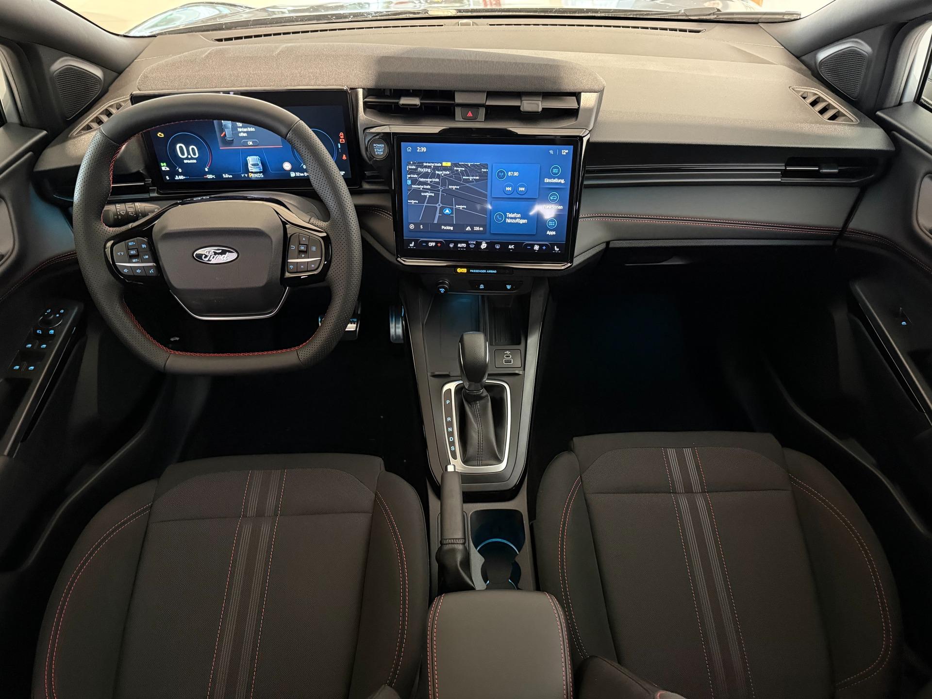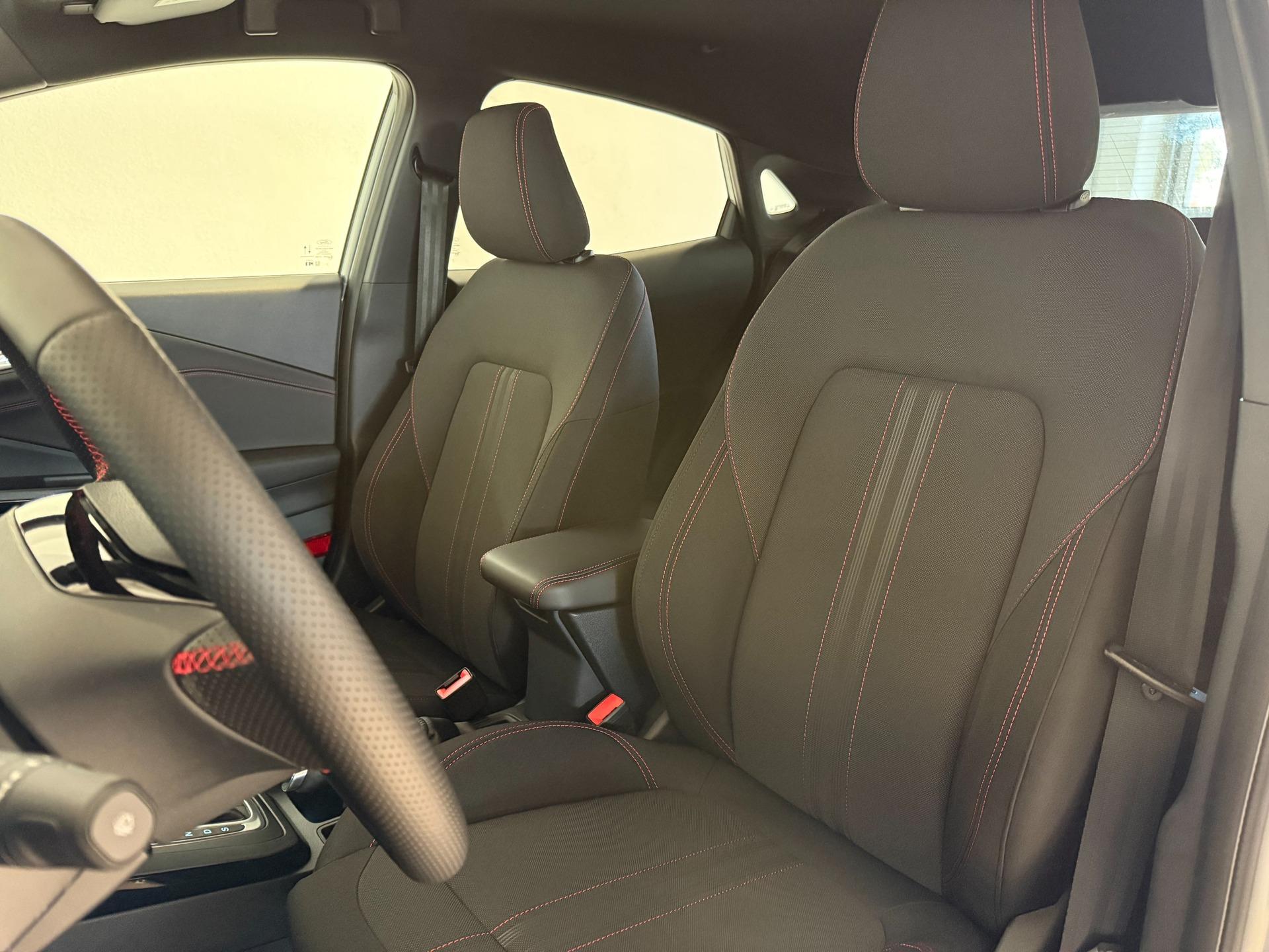 Innenausstattung Stoffpolsterung in Anthrazit mit Ziernähten in Rot