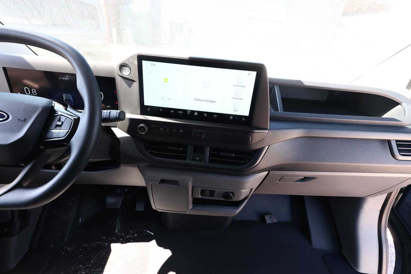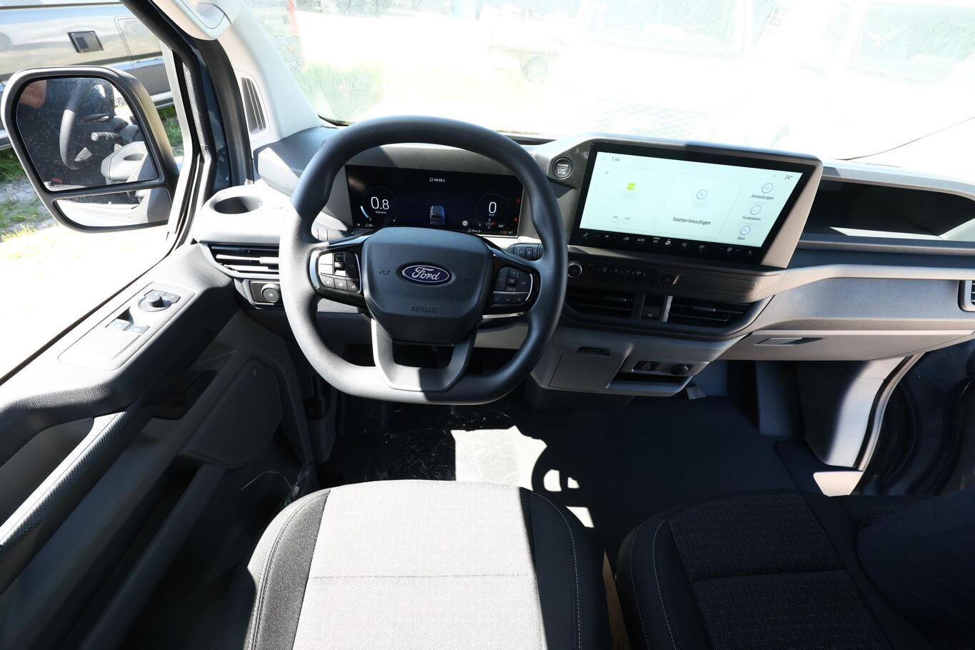 Scheinwerfer LED (Blinkleuchten LED / Fahrassistenz-System: Fernlichtassistent (Scheinwerfer mit Abblendautomatik) / Tagfahrlicht LED), Anhängerkupplung: Kugelkopf fest, Laderaumschutz-Paket (Bodenbelag: Vinyl im Lade-/Fahrgastraum / Laderaumleuchte LED, extra hell / Verkleidung im Lade-/FG-Raum: hoch), 4 Lautsprecher, AdBlue Tank: 20L, Airbag Fahrerseite, Armlehne Fahrersitz, Audiosystem: Radioempfang Digital (DAB / DAB+) mit 13" Multifunktionsdisplay und SYNC 4, Außenspiegel schwarz lackiert, Beifahrerdoppelsitz mit Durchladefunktion, Blinkleuchte in Außenspiegel integriert, Einparkhilfe vorn und hinten, Fahrassistenz-System: Falschfahrer-Warnfunktion, Fahrassistenz-System: Pre-Collision-System, Fahrassistenz-System: Spurhalteassistent, Fahrassistenz-System: Verkehrsschildassistent, Fahrersitz (4-fach verstellbar), Geschwindigkeits-Regelanlage (Tempomat), Intelligenter Geschwindigkeits-Begrenzer, Kraftstofftank: 55 Ltr., Lenkrad mit Multifunktion, Navigation in Verbindung mit dem Smartphone (über Apple Carplay / Android Auto /...), Reifen 215/65 R16, Rückfahrkamera, Schadstoffarm nach Abgasnorm Euro 6e (EU6 EA), Seitenairbag, Sitze im Fahrerhaus: Fahrersitz mit Lendenwirbelstütze, Smartphone-Schnittstelle (Apple CarPlay / Android Auto), Steckdose 12V, Verzurrösen (6), Feststellbremse elektrisch, FordPass Connect inkl. eCall, Heckflügeltüren, Karosserie/Aufbau: Kasten Standard, Laderaumtrennwand Metall, Motor 2,0 Ltr. - 125 kW EcoBlue KAT, Power KeyFree-Startfunktion, Radstand 3500 mm, Schiebetür Lade-/Fahrgastraum rechts, Schmutzfänger hinten, Schmutzfänger vorn, Stahlfelgen 6,5x16, Zul. Gesamtgewicht 3,20 t, Anti-Blockier-System (ABS), Antriebsart: Frontantrieb, Elektron. Stabilitäts-Programm (ESP), Getriebe Automatik - (8-Stufen), Klimaautomatik, Airbag Beifahrerseite, Fensterheber elektrisch, Sitze im Fahrerhaus: Fahrer- und Beifahrersitz heizbar, Zentralverriegelung mit Fernbedienung, Frontscheibe heizbar, Fahrassistenz-System: Berganfahr-Assistent, Außenspiegel elektr. verstell- und heizbar, Scheibenwischer mit Regensensor, Reifendruck-Kontrollsystem, Rußpartikelfilter, Start/Stop-Anlage