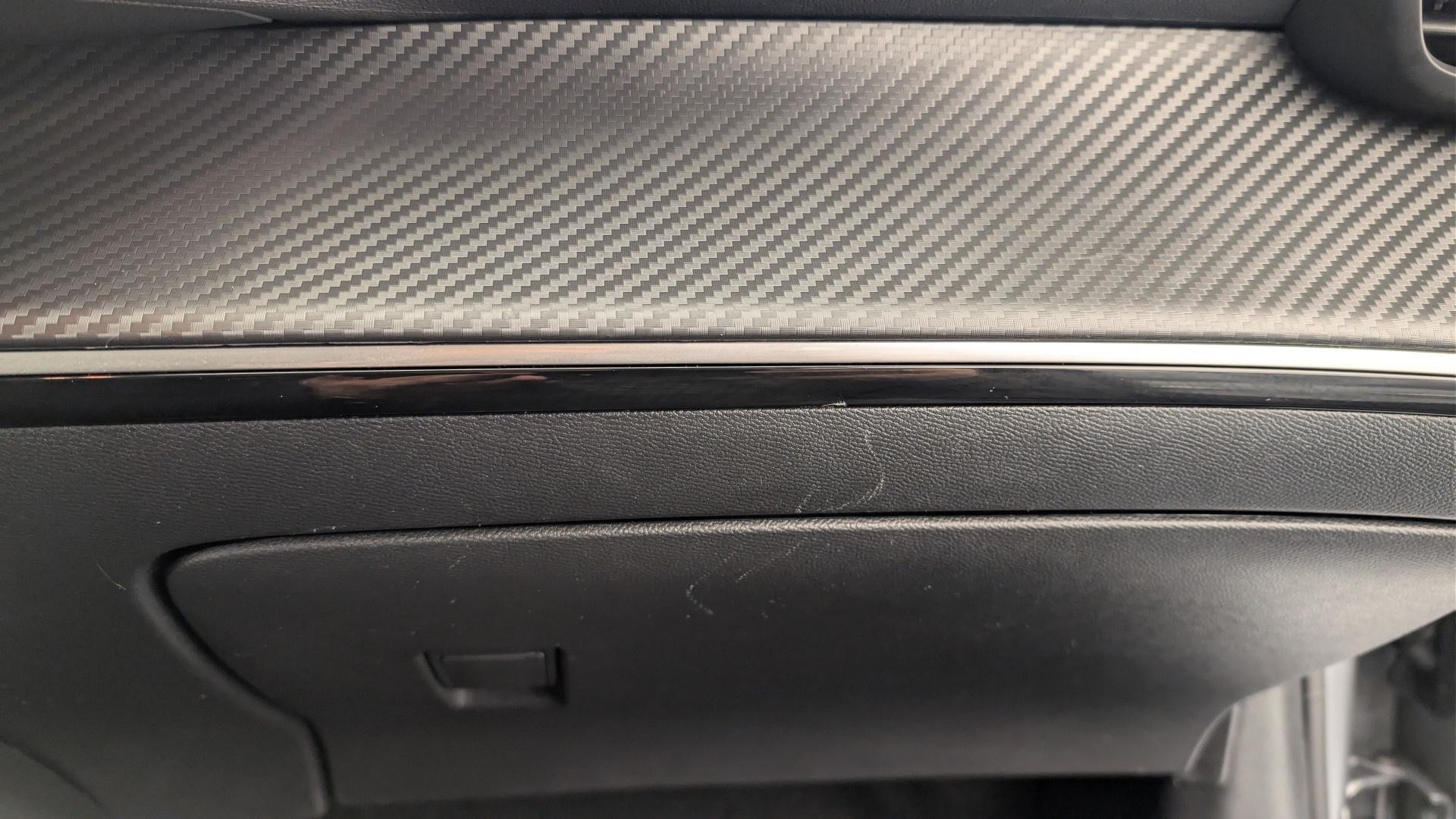 • Turverkleidungen vorne mit eingespritztem Carbone-Dekor-Medaillon, glanzend schwarzer Leiste und mattschwarzem Tampondruck